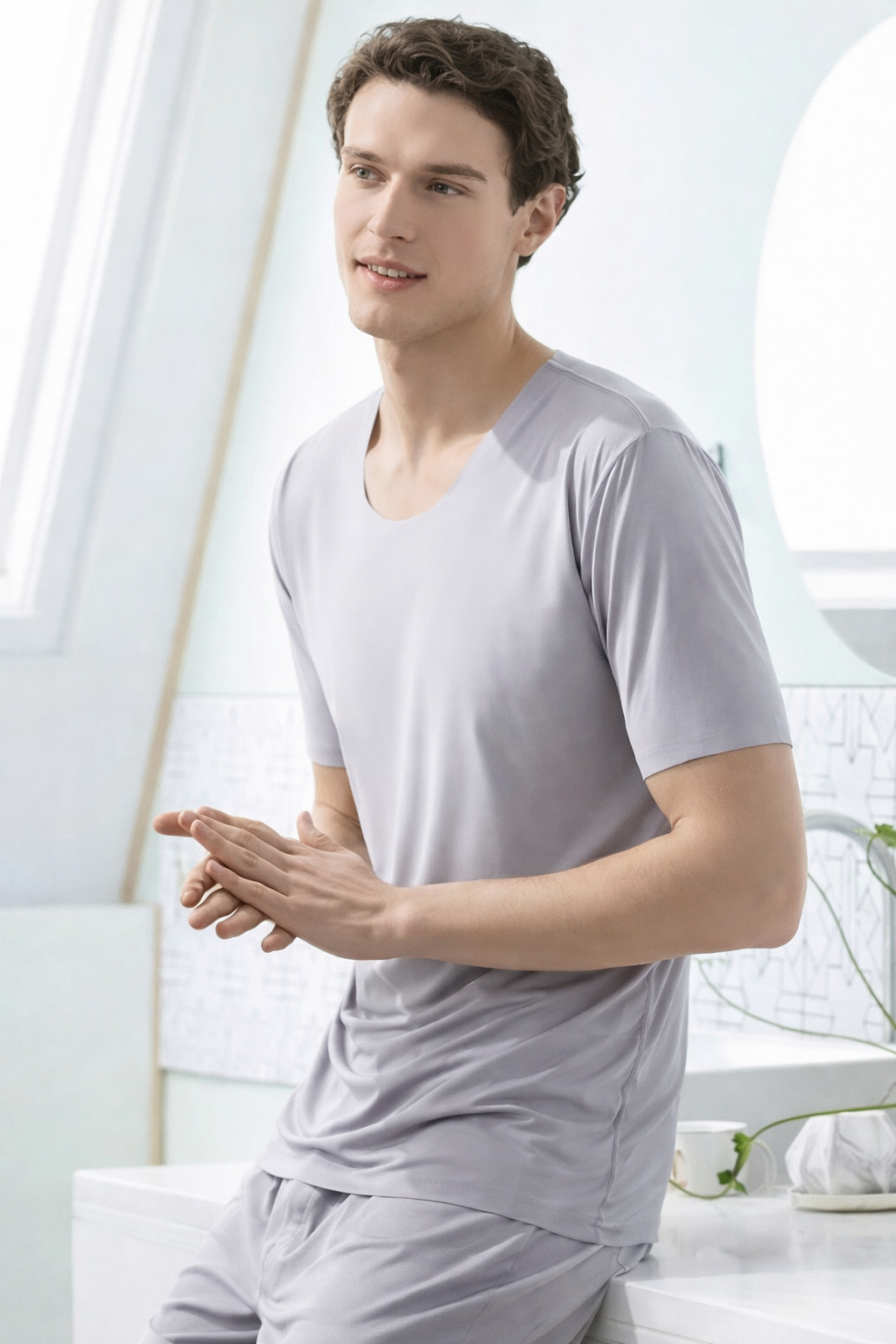 Pyjama Homme Été – Ensemble 2 Pièces en Ice Silk / Modal Léger | Manches Courtes & Pantalon